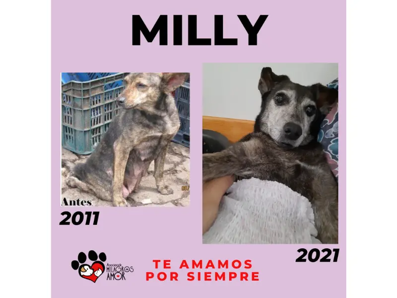 Lastimosamente nuestra amada “Milagrito” falleció el 24 de julio de 2021, dejándonos un vacío en el corazón que no se puede expresar con palabras. Milly no fue solo un rescate; fue quien nos impulsó a cumplir el sueño de tener un refugio y salvar cientos de vidas. Por que gracias a Milly conocimos personas con el común denominador de amar a los animales y fue así que unimos fuerzas para rescatar y rehabilitar a perritos y gatos que sufren maltrato y abandono.